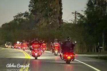 We ride under the 50/50 rule: More than a 50% chance of rain or under 50 degrees the ride will be cancelled. Details can be found by clicking the link below, viewing the events calendar, and events on the Facebook page.